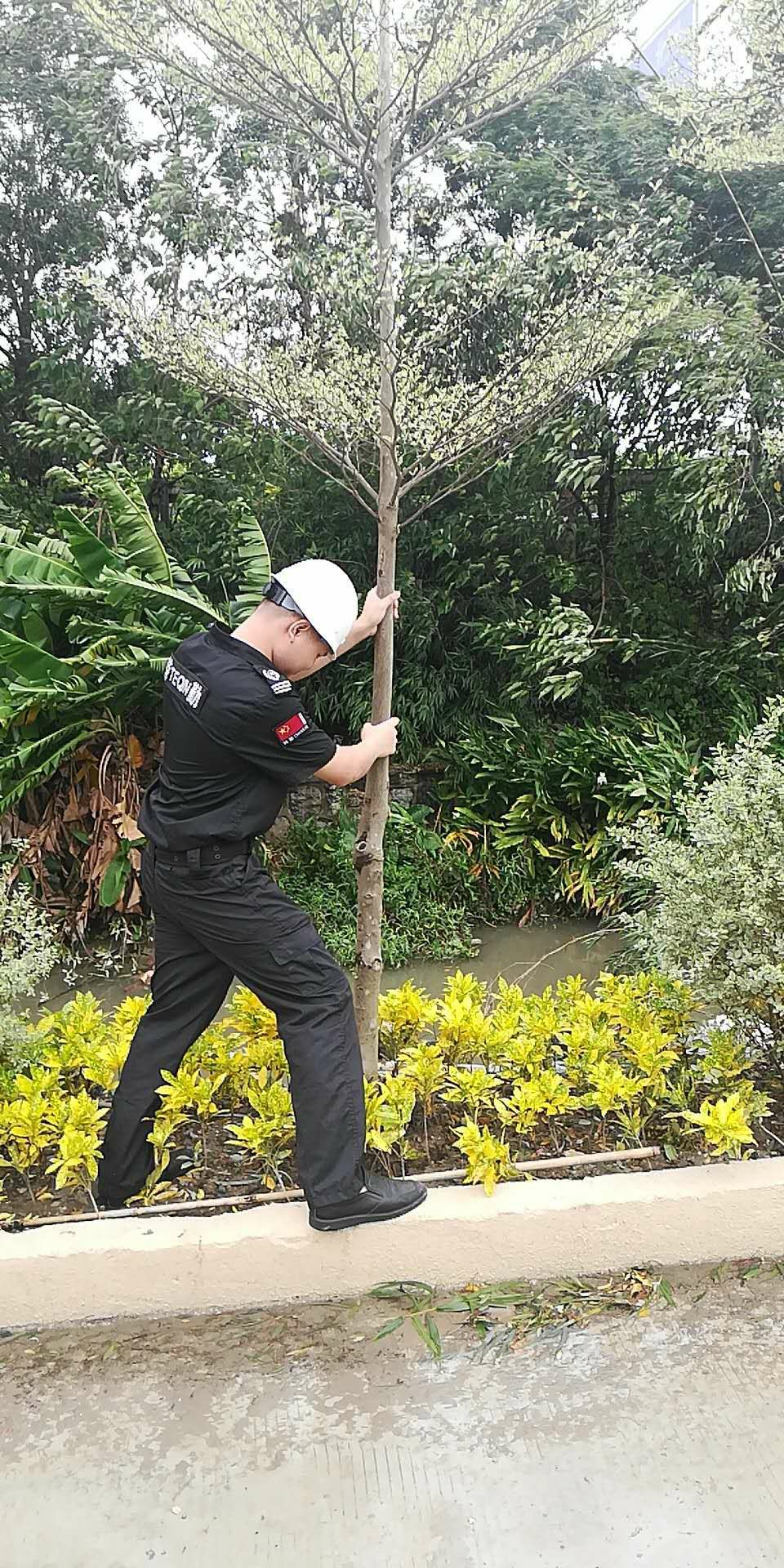 安保和后勤的值守工作人员,冒着风雨抢险救灾,保证交通顺畅,狂风中,他们迎风而上, 不怕脏不怕累,众志成城,任功任怨的羊城安保精神,值得表扬!